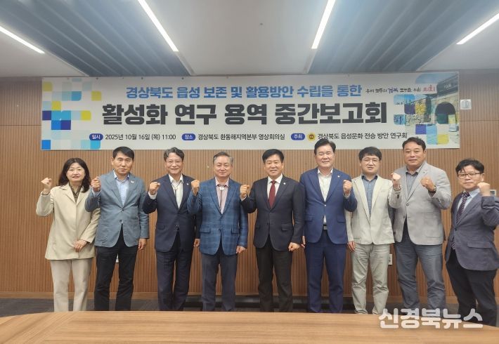 [신경북뉴스] 경북도 의원연구단체인 ‘경상북도 읍성문화 전승 방안 연구회’(대표 서석영 의원)는 10월 16일 경상북도 환동해지역본부 4층 영상회의실에서'경상북도 읍성보전 및 활용방안 수립을 통한 활성화 연구용역'중간보고회를 개최했다.