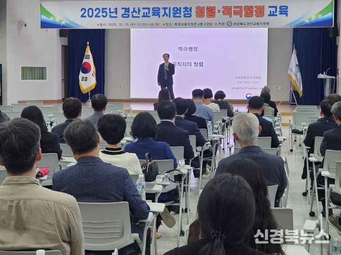 [신경북뉴스] 경산교육지원청은 10월 15일 13시 10분부터 경산교육지원청 학생교육지원관 2강당에서 청렴·적극행정 교육을 실시했다.