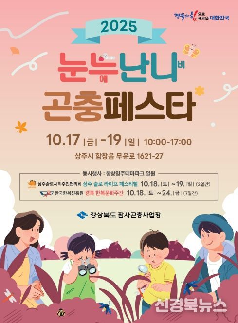 [신경북뉴스] 경상북도 잠사곤충사업장은 17일부터 19일 3일간 잠사곤충사업장 일원에서‘2025 눈누(에)난나(비) 곤충페스타’를 개최한다.