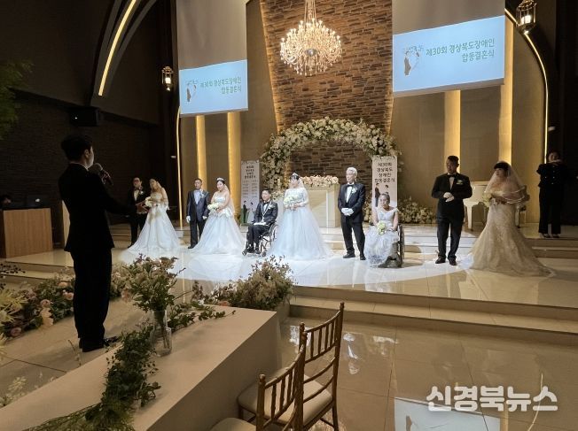 [신경북뉴스] 경상북도는 한국장애인재활협회 경북협회 주관으로 22일 경북 안동 두리원웨딩홀에서 신랑·신부 5쌍과 가족, 친지, 내빈 등 120여 명이 참석한 가운데 ‘제30회 경상북도 장애인 합동결혼식’을 성황리에 개최했다.