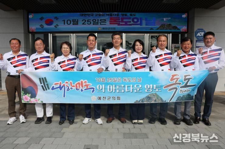 [신경북뉴스] 예천군의회는 24일, 독도의 날을 맞아 군의회 전정에서 의원과 의회사무과 직원이 참가한 가운데 독도사랑 캠페인을 가졌다.