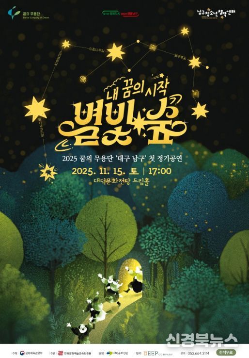 [신경북뉴스] 대구 남구청소년창작센터는 오는 11월 15일 17시 대덕문화전당 드림홀에서 꿈의 무용단 '대구 남구'의 첫 정기공연 ‘내 꿈의 시작, 별빛 숲’을 개최한다고 밝혔다.
