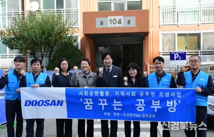 [신경북뉴스] 김천시 지역사회보장협의체와 ㈜두산전자 김천공장은 5일 지역 내 취약 가정 아동 2가구를 대상으로 ‘꿈꾸는 공부방’ 조성 사업을 진행했다고 밝혔다.