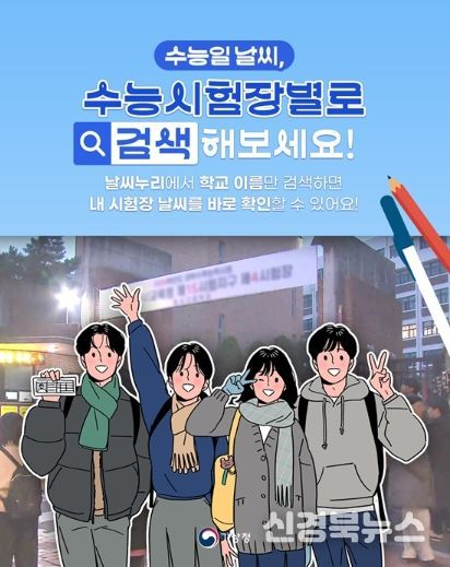 [신경북뉴스] 날씨누리에서 학교 이름만 검색하면 내 시험장 날씨를 바로 확인할 수 있어요!