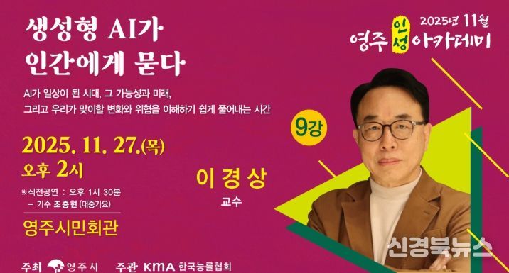 영주시는 오는 27일 오후 2시, 영주시민회관에서 KAIST 이경상 교수를 초청해 ‘11월 영주인성아카데미’를 개최다고 밝혔다.
