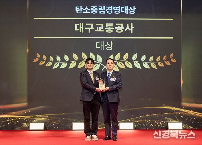 [신경북뉴스] 대구교통공사는 지난 11월 20일, 한국경영인증원이 주관한 ‘제24회 글로벌스탠더드경영대상(Global Standard Management Awards)’에서 ‘탄소중립경영대상’을 수상했다.