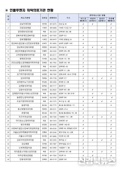 [신경북뉴스] 안동시는 최근 질병관리청의 인플루엔자 유행주의보 발령에 따라, 12월 1일부터 백신 소진 시까지 모든 시민을 대상으로 인플루엔자(독감) 무료 예방접종을 전면 확대 시행한다.