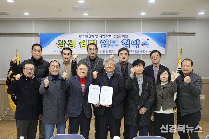 [신경북뉴스] 대구교통공사는 지역경제 활성화 및 지역소멸 극복을 위한 협력체계를 구축하기 위해 지난 11월 6일 대구서문시장연합회와, 18일에는 서문시장상가연합회와 상생협력 업무협약(MOU)을 체결했다.