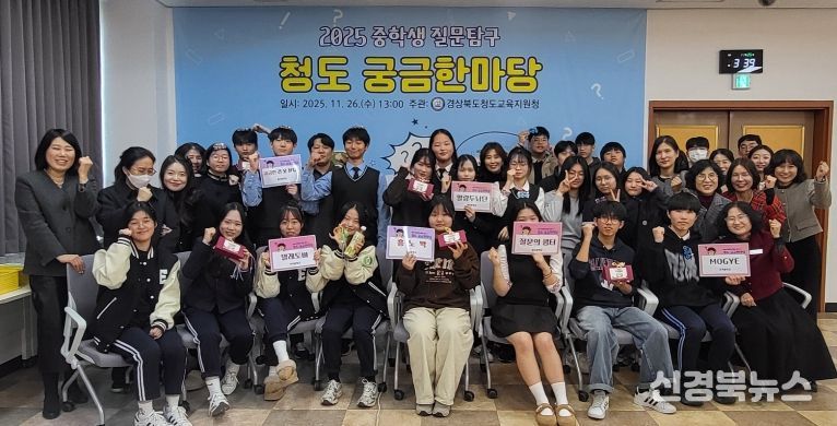 [신경북뉴스] 청도교육지원청 오홍현 교육장은 지난 11월 26일 청도교육지원청 3층 대회의실에서 ‘제 1회 청도 중학생 질문·탐구 궁금한마당’ 지역 예선을 개최했다. 이번 대회에는 관내 모든 중학교가 참여해, 3학년 학생 3~4명과 지도교사 1명이 한 팀을 이룬 총 6개 팀이 사제동행 형태로 참가했다.