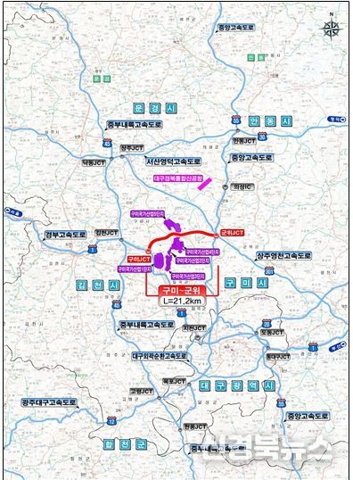 또한, 구미 국가산업4단지와 5단지(하이테크밸리)가 고속도로와 직접 연결되어 물류비용 절감 등 기업 경쟁력 강화에도 직접적인 도움이 되며, 대구경북 신공항과도 고속도로로 연결되어 기존 도로 이용 대비 이동 시간이 대폭 단축돼 신공항 이용객 편의도 크게 증진될 것으로 기대된다.