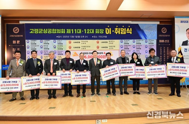 [신경북뉴스] 고령군은 지난 1일 가얏고마을에서 열린 ‘2025 고령군상공협의회 워크숍 및 정기총회’에서 총 4,900만원의 고향사랑기부금 기탁식을 진행했다. 이번 기탁식에는 고령군 발전에 뜻을 모은 고령군 소재 10개 기업이 참여했으며, 이들의 따뜻한 나눔은 군민들에게 큰 울림을 주고 있다.
