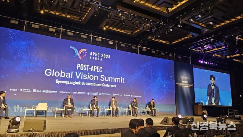 [신경북뉴스] 27일 개막한 'Post-APEC Global Vision Summit'에는 국내외 기업인과 외교 관계자를 포함한 700여 명이 참석했다. 회의는 AI, 바이오, 공급망, K-컬처를 주요 의제로 다루며, 포스트 APEC 시대 국제 협력의 중요성을 강조했다. 경북 22개 지자체장은 투자 확대와 글로벌 연계를 강화하겠다는 의지를 담은 '포스트 APEC 비전 선언'을 발표했다.