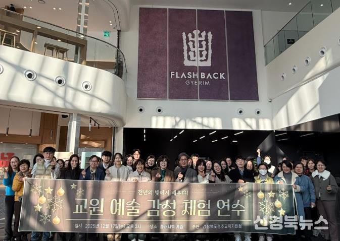 [신경북뉴스] 경상북도경주교육지원청은 2025년 12월 17일 오후 3시부터 관내 초·중·고등학교 예술교육 담당교사 50여 명을 대상으로 학교 예술교육 활성화를 위한 교원 예술 감성 체험 연수를 실시했다.