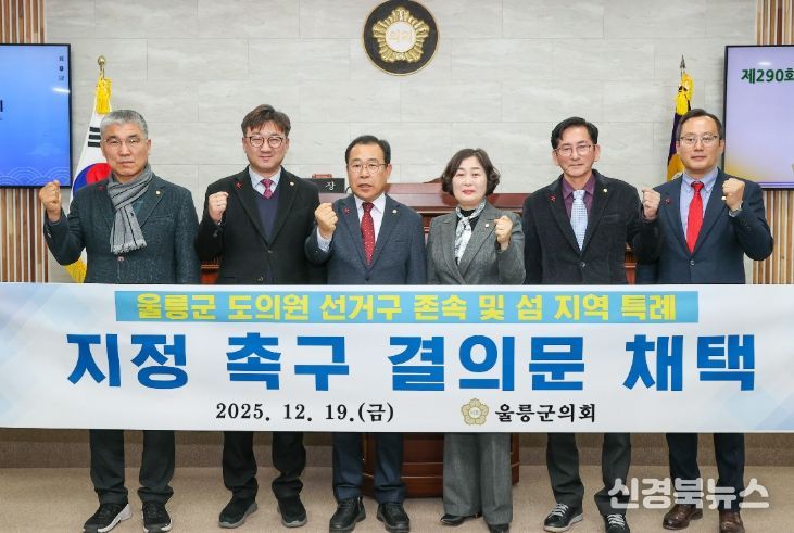 [신경북뉴스] 울릉군의회는 2025년 12월 19일 제290회 제2차 정례회 제5차 본회의에서 최병호 의원이 대표 발의한 '울릉군 도의원 선거구 존속 및 섬 지역 특례 지정 촉구 결의문'을 채택했다.