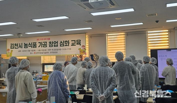 [신경북뉴스] 김천시는 12월 19일 오후, 김천시농업기술센터 농촌생활교육관 조리실습실에서 ‘2025년 김천시 농식품 가공 창업 심화 교육’ 수료식을 성황리에 개최했다.