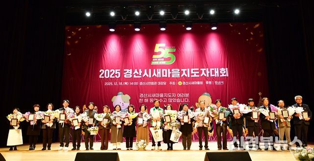 [신경북뉴스] 경산시새마을회(회장 이말식)는 18일 경산시민회관 대강당에서 경산시새마을회 가족과 관계자 등 500여 명이 참석한 가운데 새마을지도자들의 화합과 결속을 다지기 위한 '2025 경산시 새마을지도자 대회'를 개최했다.