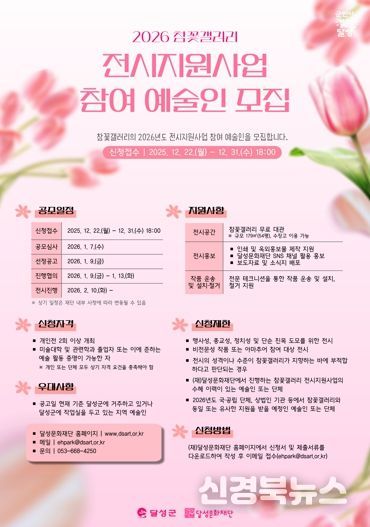 [신경북뉴스] (재)달성문화재단은 오는 22일부터 31일까지 ‘2026 참꽃갤러리 전시지원사업 참여예술인’을 모집한다.