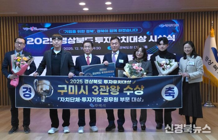 [신경북뉴스] 구미시는 지난 19일 경북도청 다목적홀에서 열린 '2025년 경상북도 투자유치 대상' 시상식에서 지자체 부문, 기업 부문, 유공 공무원 부문 모두에서 대상을 수상하며 ‘트리플크라운(3관왕)’을 달성했다. 경상북도 내 시·군의 투자유치 실적과 투자 활성화 노력 등을 종합 평가한 결과로, 구미시는 어려운 대외 여건 속에서도 2024년에 이어 2년 연속 최고 영예를 안았다.