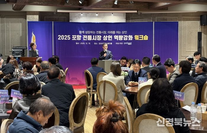 [신경북뉴스] 포항시는 지난 19일 포마레웨딩컨벤션에서 서재원 포항시 정무특보, 임주희 포항시의회 경제산업위원장을 비롯해 지역 전통시장 상인회 임원 등 관계자 100여 명이 참석한 가운데 2025년 ‘포항시 전통시장 상인 역량강화 워크숍’을 개최했다.