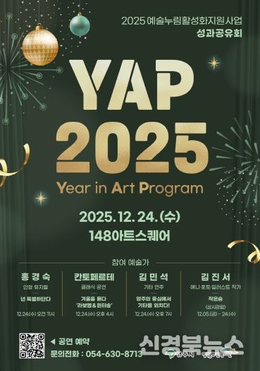 [신경북뉴스] (재)영주문화관광재단은 오는 12월 24일 148아트스퀘어에서 크리스마스 컨셉의 ‘2025 예술누림활성화 지원사업 성과공유회 'YAP 2025'’를 개최할 예정이다.