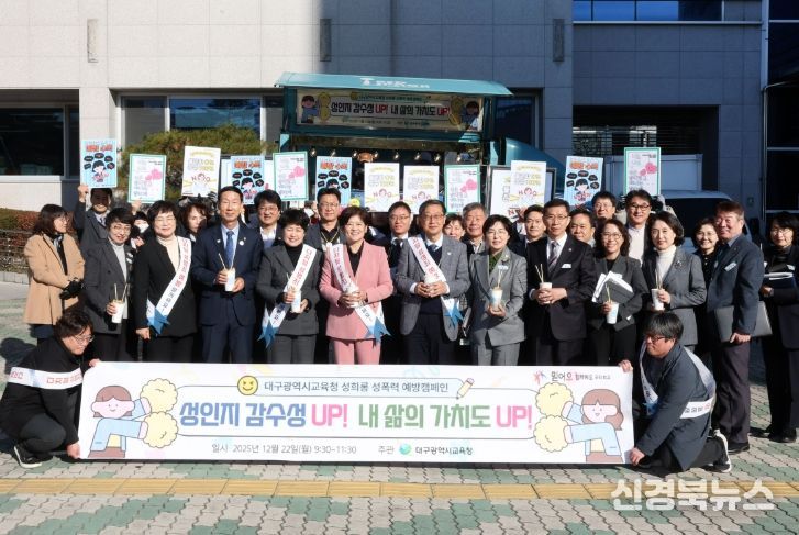 [신경북뉴스] 대구시교육청은 12월 22일 오전 9시 30분부터 11시 30분까지 시교육청 야외 마당에서 ‘직장 내 성희롱·성폭력 예방 및 디지털 성범죄 예방 캠페인’을 실시했다.