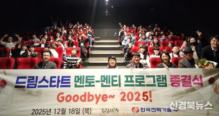 [신경북뉴스] 김천시 드림스타트는 지난 18일 율곡동 CGV영화관에서 아동 및 가족, 한국전력기술(주) 재능나누미봉사단 90여 명이 참석한 가운데 2025년 드림스타트 멘토·멘티 프로그램 종결식을 가졌다.