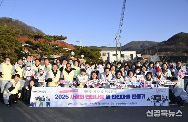[신경북뉴스] 달성군자원봉사센터(센터장 송종구)는 12월 22일 달성군 관내 에너지·안전 취약계층 9가구를 대상으로 연탄 총 3,150장(1가구당 350장)과 화재 안전 예방키트를 전달하는 ‘2025 사랑의 연탄나눔 및 안전마을 만들기’ 활동을 추진했다.