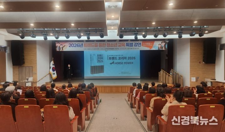 [신경북뉴스] 김천교육지원청은 2025년 12월 19일 오후 2시 30분, 학생문화예술센터에서 관내 교직원, 학부모, 지역민 등 200여명이 참석한 가운데 '2026년 트렌드를 통한 청소년 교육 특강'을 성공적으로 개최했다.