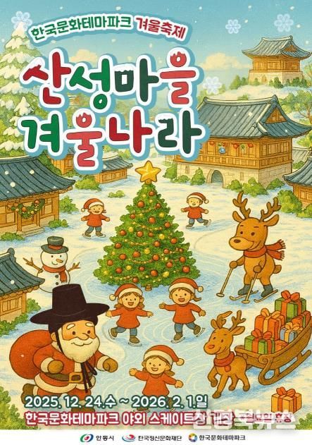 [신경북뉴스] 안동시와 한국정신문화재단은 한국문화테마파크에서 12월 24일부터 2026년 2월 1일까지 크리스마스와 겨울을 주제로 한 ‘산성마을 겨울나라’ 행사를 한국문화테마파크 일원에서 개최한다고 밝혔다.
