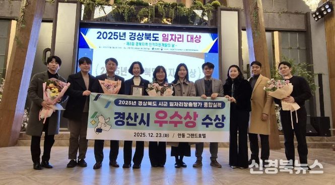 [신경북뉴스] 경산시는 23일 안동 그랜드호텔에서 열린'2025년 경상북도 시·군 일자리 창출 추진실 적 평가'에서 종합 실적 우수상을 수상했다.