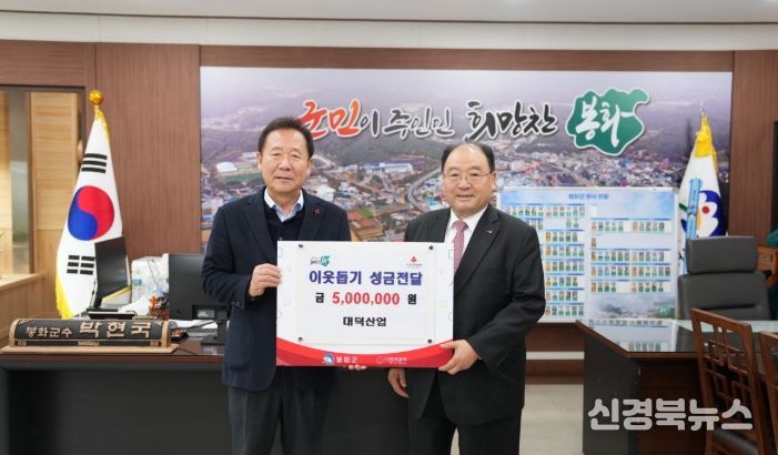 [신경북뉴스] 대덕산업(대표 심재덕)은 12월 24일 봉화군청을 방문해‘희망2026나눔 캠페인’성금 500만원을 전달했다.