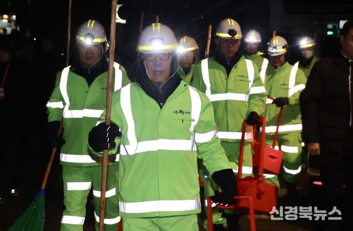 [신경북뉴스] 김민석 국무총리는 12월 26일 6시 30분경, 서울특별시 관악구 서원동 환경공무관 업무공간을 방문해 직접 거리를 청소하고 담소를 나누며 격려하는 시간을 가졌다.
