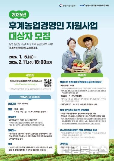 [신경북뉴스] 영주시는 지역 농업의 고령화와 인력 감소에 대응하고, 안정적인 농업 경영 기반을 갖춘 전문 농업인을 육성하기 위해 ‘2026년 후계농업경영인 육성사업’ 대상자를 모집한다.