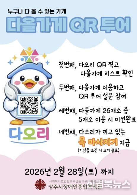 [신경북뉴스] 상주시장애인종합복지관은 1월 2일부터 2월 28일까지 지역 내 무장애 상가 이용을 활성화하기 위한‘다올가게 QR 투어’ 캠페인을 진행한다.