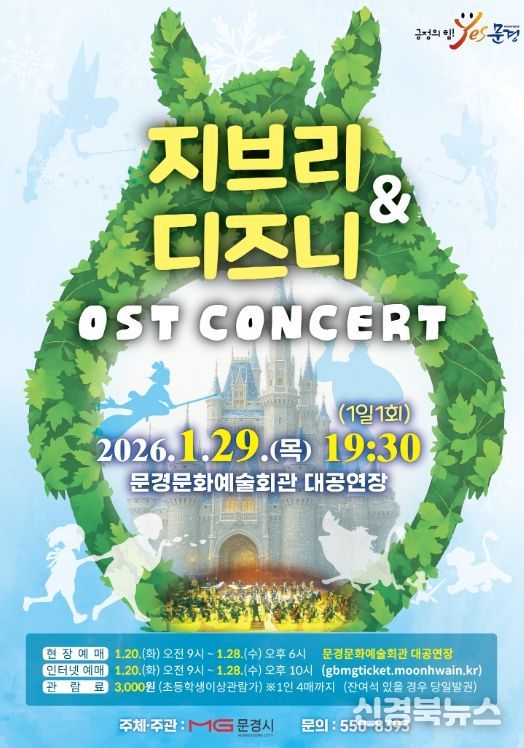 [신경북뉴스] 문경문화예술회관에서는 신년 겨울 방학을 맞아 인기 애니메이션 대표곡들을 들려주는 지브리 ·디즈니 OST 콘서트 공연을 1월 29일 19:30 (1일 1회)에 문경문화예술회관 대공연장에서 개최한다.