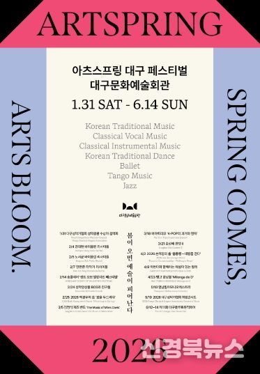 [신경북뉴스] 대구문화예술회관은 대구를 기반으로 활동하는 지역 예술인들의 공연을 한데 모아 그들의 예술혼을 집중 조명하는 축제 '2026 아츠스프링 대구 페스티벌'의 16개 공연을 오는 1월 31일부터 6월 14일까지 대구문화예술회관에서 개최한다고 밝혔다.