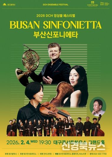 [신경북뉴스] 대구콘서트하우스가 주최하는 2026 DCH 앙상블 페스티벌이 오는 2월 4일 저녁 7시 30분, 대구콘서트하우스 그랜드홀에서 부산신포니에타의 개막 공연과 함께 본격적인 막을 올린다.