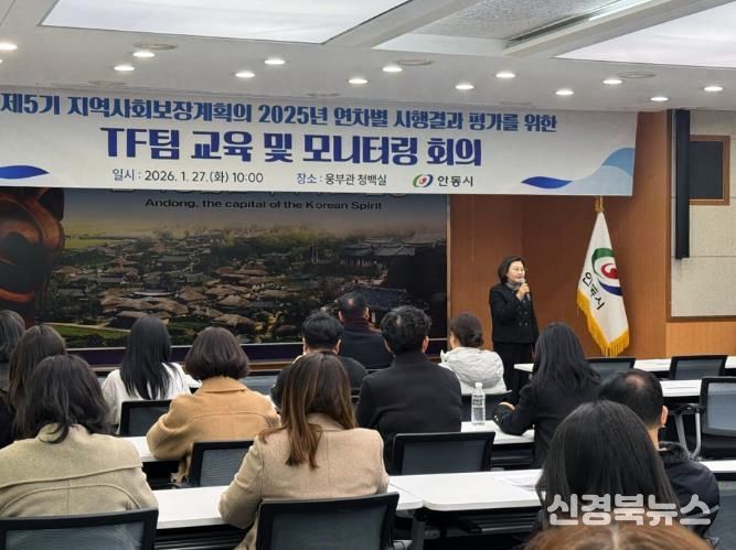 [신경북뉴스] 안동시는 1월 27일 시청 청백실에서 ‘제5기(2023~2026) 지역사회보장계획’ 2025년도 연차별 시행계획의 체계적이고 객관적인 추진 결과 평가를 위해 TF팀 교육 및 모니터링 회의를 개최했다.