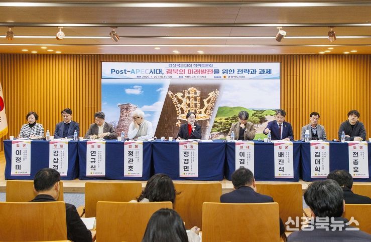 [신경북뉴스] 경상북도의회는 지난 27일 경상북도청 다목적홀에서 APEC 및 문화관광분야 전문가 및 관계공무원 등과 함께 ‘Post-APEC시대, 경북의 미래발전을 위한 전략과 과제’라는 주제로 정책토론회를 개최했다.