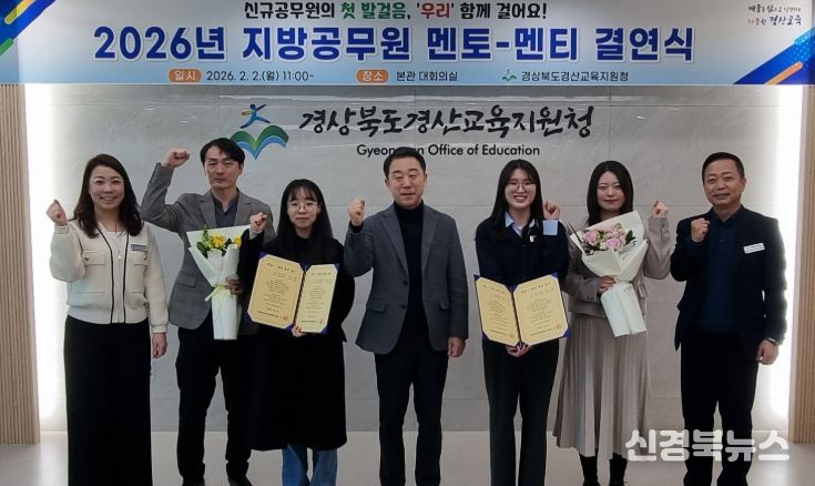 [신경북뉴스] 경산교육지원청 정수권 교육장은 2일 오전 11시부터 교육지원청 5층 대회의실에서 신규 공무원 2명과 선배공무원들이 참석한 가운데 지방공무원 후견인제(멘토-멘티) 결연식을 개최했다.