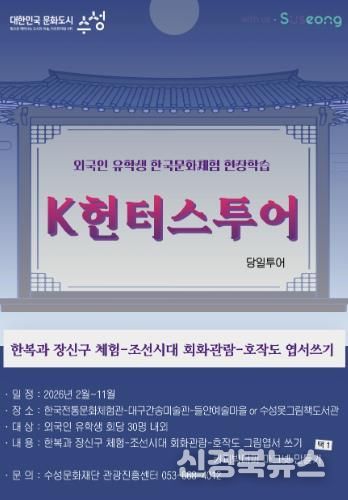 [신경북뉴스] 대구 수성문화재단은 올해 2월부터 11월까지 대구·경북 외국인 유학생을 대상으로 한국문화체험 현장학습 ‘K헌터스 투어’를 운영한다.