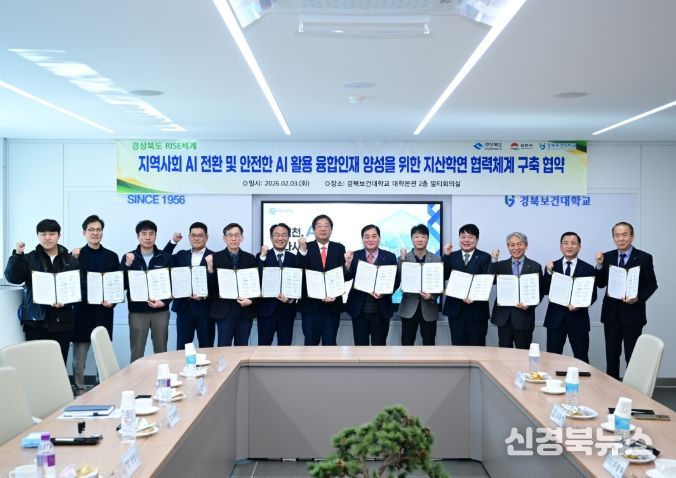 [신경북뉴스] 김천시는 2월 3일 오전 11시, 경북보건대학교에서 '지역사회 AI 전환 및 AI 활용 융합인재 양성을 위한 지·산·학·연 협력체제 구축 협약'을 체결했다.