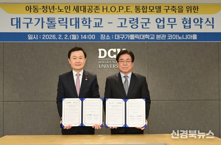 [신경북뉴스] 고령군은 2월 2일 대구가톨릭대학교와 함께 경상북도 지역혁신중심 대학지원체계(RISE)사업의 일환으로'경북 U-Care 맞춤돌봄서비스'추진을 위한 업무협약을 체결했다고 밝혔다.