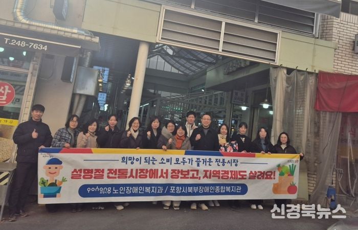 [신경북뉴스] 포항시 노인장애인복지과는 지난 6일 북부장애인종합복지관 직원들과 함께 장량성도시장에서 ‘설맞이 전통시장 장보기 행사’를 진행했다.
