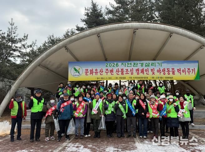 [신경북뉴스] 자연보호중앙연맹 안동시협의회는 2월 5일, 서후면 천등산 일원에서 자연보호협의회 회원 등 90여 명이 참석한 가운데 ‘2026년 자연환경 살리기 행사’를 실시했다.