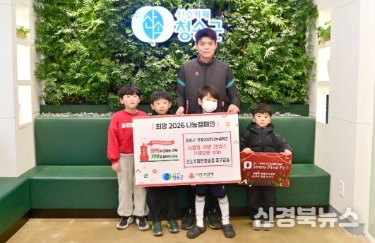 [신경북뉴스] 청송군은 지난 6일 축구교실 스노우파인청송점(대표 송준홍)이 군청을 방문해 지역 내 복지 취약계층 등 도움이 필요한 이웃을 위해 100만 원 상당의 라면을 기탁했다고 밝혔다.