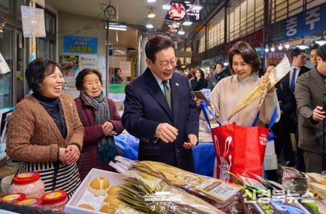 [신경북뉴스] 이재명 대통령과 김혜경 여사는 오늘 낮, 설 명절을 앞두고 충북 충주시에 위치한 무학시장을 찾아 지역 세밑 물가를 점검하고 상인들을 만나 현장 의견을 청취했다.
