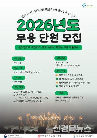 [신경북뉴스] (재)칠곡문화관광재단(이사장 김재욱)은 2025 꿈의 무용단, ‘칠곡’ '레인보우' 단원을 모집한다.