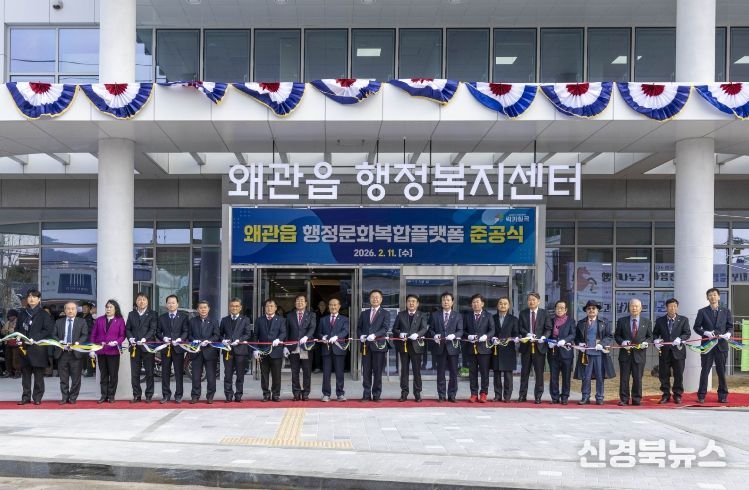 [신경북뉴스] 칠곡군은 왜관읍 행정문화복합플랫폼 건립 사업을 마무리하고 지난 11일 준공식을 열었다. 기존 왜관읍사무소 자리에 들어선 이 건물은 도시재생뉴딜사업의 일환으로 추진됐으며, 국비 100억 원을 포함해 총 282억 원이 투입됐다. 지하 1층부터 지상 4층까지, 연면적 7,311㎡ 규모다.