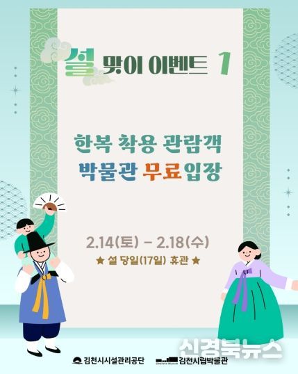 [신경북뉴스] 김천시시설관리공단(이사장 김재광)은 2026년 설 명절을 맞아 감문국이야기나라와 김천시립박물관을 중심으로 가족 단위 관람객이 함께 즐길 수 있는 ‘설맞이 문화 행사’를 운영한다. 이번 행사는 2월 14일부터 2월 18일까지 진행된다.